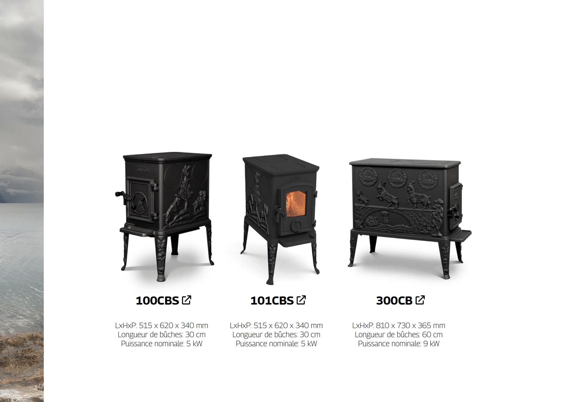 Cette famille fait partie de notre gamme « nordique » : des poêles à bois ornés de l’illustration d’une légende norvégienne sur les panneaux latéraux en fonte.