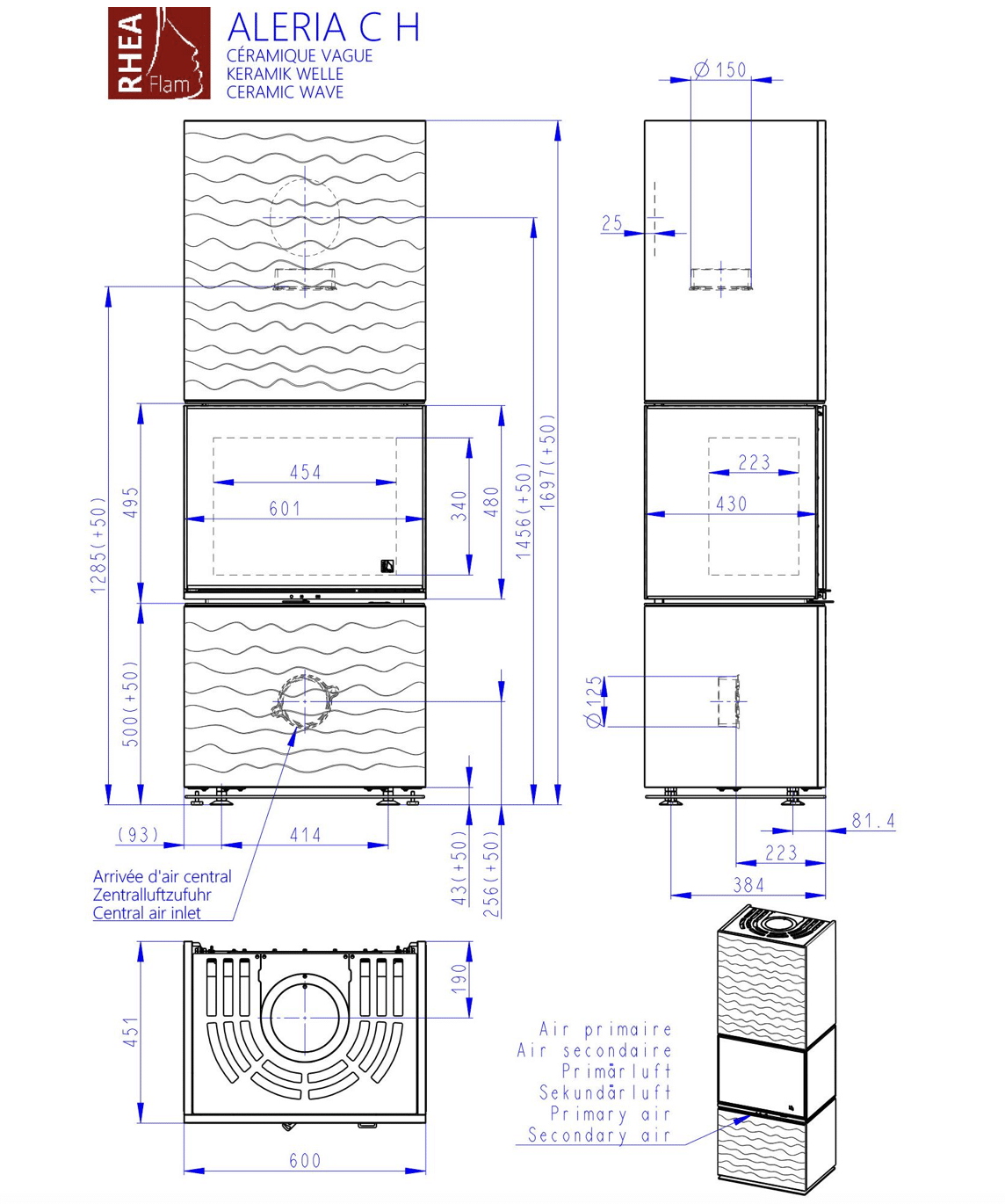 DIAMÈTRE DES SORTIE DES FUMÉES:150.00mm haute ou arrière