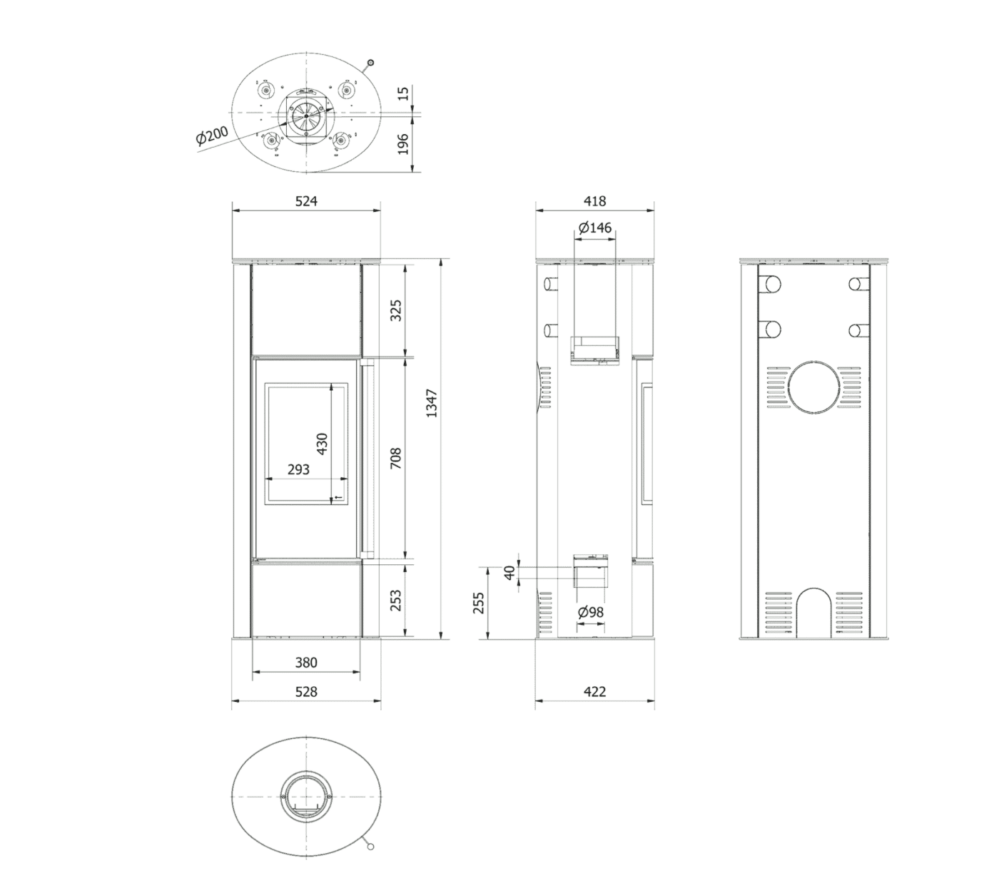 DIAMÈTRE DES SORTIE DES FUMÉES:150.00mm arrière ou haute