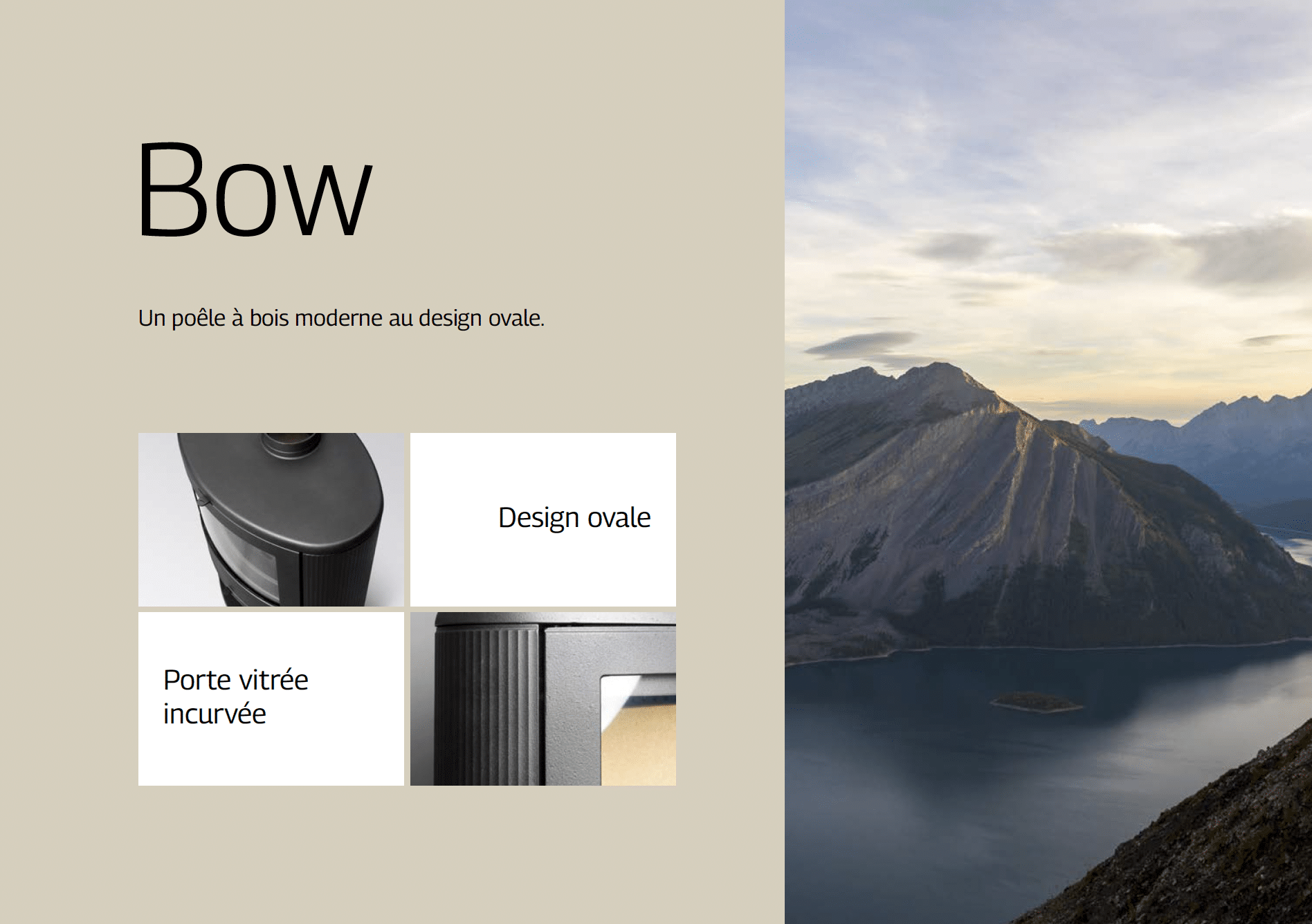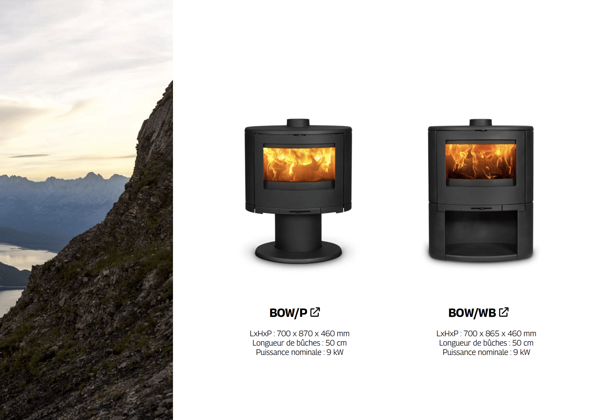Le design ovale du Bow et sa porte vitrée élégamment courbée offrent une vue panoramique sur le feu.