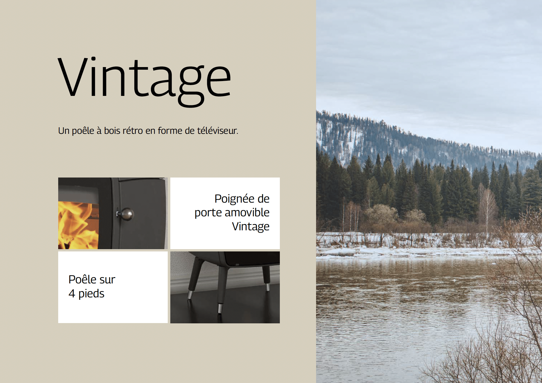 Ce poêle à bois est équipé d’une poignée amovible et peut être directement raccordé à la prise d’air extérieur.