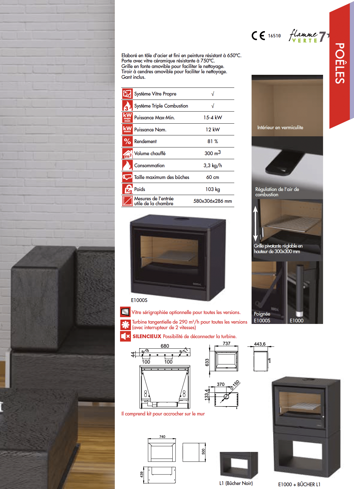 Elaboré en tôle d’acier et fini en peinture résistant à 650ºC.